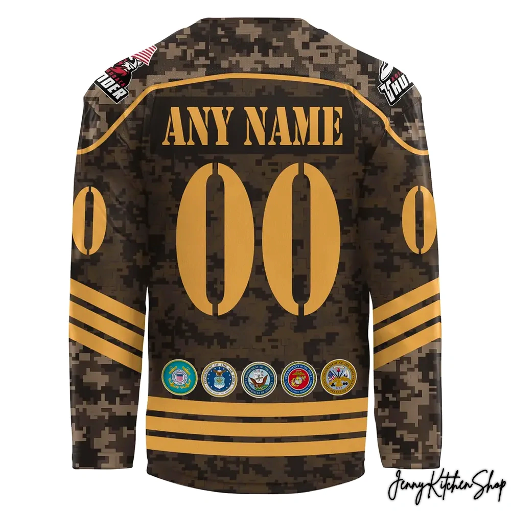 Adirondack Thunder 2025 Military Appreciation Night Tribute Jersey: Digital Camo, Golden Heart