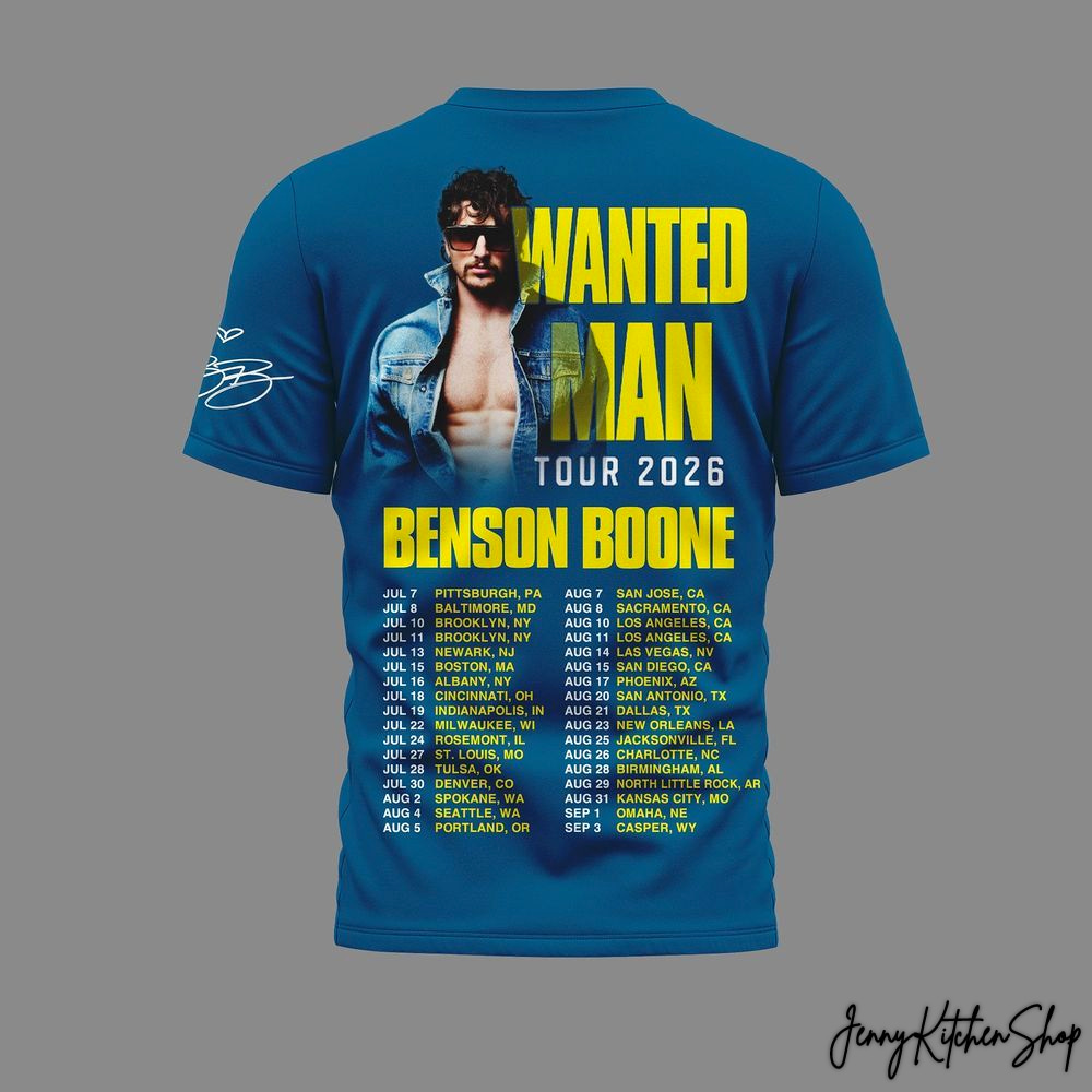 - Exclusive Tour Art: Features unique graphics and typography inspired by the Benson Boone Wanted Man Tour 2026.