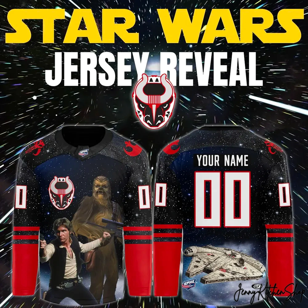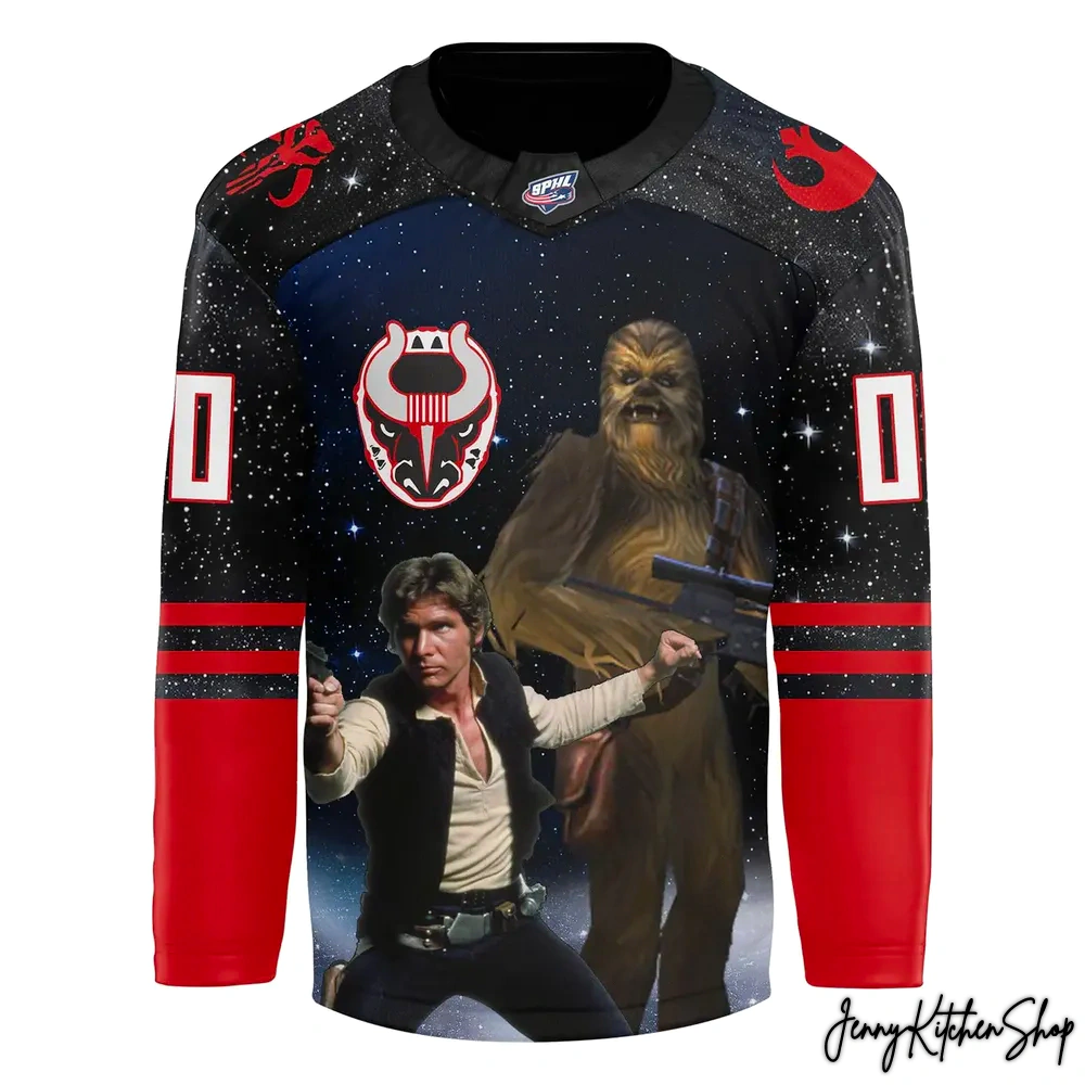 Ah, fellow fans, gather ’round! There’s a rumble on the ice, but it’s not just the skate blades – it’s the roar of a Wookiee co-pilot, the hum of a hyperdrive, and the undeniable energy of Bulls Nation colliding with a galaxy far, far away! Forget those generic fan shirts that just slap a logo on; this isn’t that. This is the Birmingham Bulls 2026 Star Wars Special Hockey Jersey, a wearable epic forged for those who feel the Force resonate as strongly as the puck hitting the net. Imagine stepping into the arena, the lights dimming for puck drop, but your heart is already halfway across the galaxy, feeling the spirit of rebellion coursing through your veins. Or maybe you’re at a convention, surrounded by fellow enthusiasts, and your jersey isn’t just a statement – it’s a conversation starter, a beacon of shared passion that instantly connects you. Our design team poured their hearts and souls into this piece, driven by the vision of uniting two powerful forces: the grit and glory of the Birmingham Bulls and the timeless saga of Star Wars. They wanted to create something that wasn’t just merchandise, but a bridge between worlds, a testament to what it means to be a true fan, daring to dream beyond the usual boundaries. We’ve seen the other jerseys out there, the ones that just scratch the surface. This? This dives headfirst into the trench run.