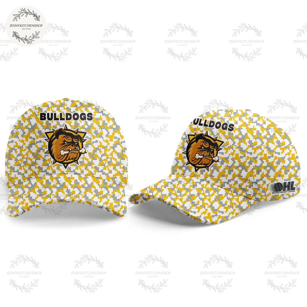- The Unyielding Bulldog Crest: Dominating the chest is the iconic Brantford Bulldogs logo, reimagined with an even fiercer intensity. The snarling bulldog, rendered in rich golden yellow and brown with powerful black outlines, grips a bone in its powerful jaws. Encased within a jagged, starburst outline, this emblem radiates an aura of aggressive determination – a perfect representation of our team’s relentless spirit and the unwavering resolve of our armed forces. It’s the heart of the jersey, a proud declaration of identity.