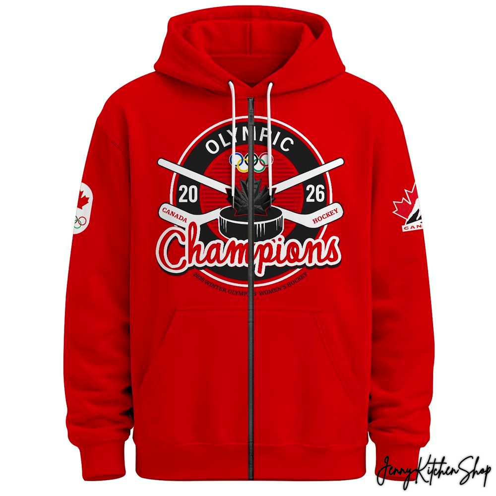 Canada Hockey Women Olympic Champions 2026 Hoodie, Zipper Hoodie, Fleece Hoodie, Gaiter Hoodie