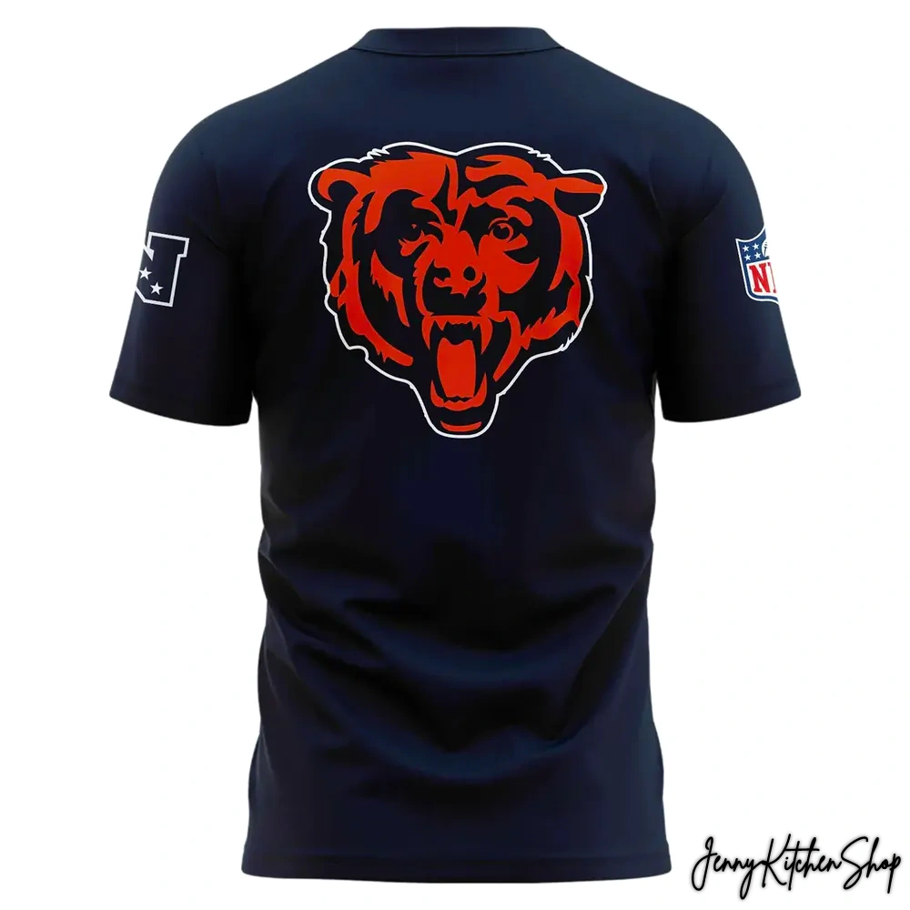 Flipping to the back, the spirit of Chicago’s football heritage takes center stage. A large, bold rendition of the iconic team mascot head stares out, rendered in a fiery orange and black outline against the deep navy blue of the shirt. This fierce, roaring bear is instantly recognizable, a powerful symbol of the team’s grit and enduring spirit, ensuring that your team pride is visible from every angle. This isn’t just a logo; it’s the emblem of a legacy, connecting the new promise of Caleb Williams with the storied history of our beloved franchise. The choice to feature this classic symbol on the back ensures a balanced design, where player tribute meets unwavering team loyalty.