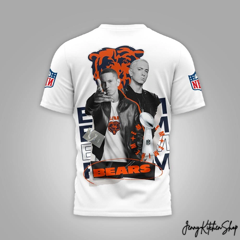 Imagine this: It’s Sunday, the air is buzzing with that crisp Chicago chill, the smell of grilling brats mixes with the roar of the crowd, and “Bear Down, Chicago Bears” is echoing in your chest. You’re pumped, ready for kickoff, ready to unleash that classic “Monsters of the Midway” spirit. But wait, there’s another track playing in your head, a raw, undeniable beat that gets your blood pumping, lyrics that hit harder than a linebacker tackle, from the “Rap God” himself. This isn’t just game day; it’s a statement. It’s the unyielding grit of Soldier Field meeting the raw, unfiltered truth of the streets. This isn’t just merchandise; it’s the uniform for the fan who lives life at full volume, who isn’t afraid to stand out, and who understands that true legends, whether on the gridiron or the mic, share an unbreakable spirit. Competitors throw some logos on a shirt and call it a day. We’re here to tell a story, your story, one that resonates with the core of your fandom, connecting the legendary roar of “Da Bears” with the lyrical fury of the global icon.