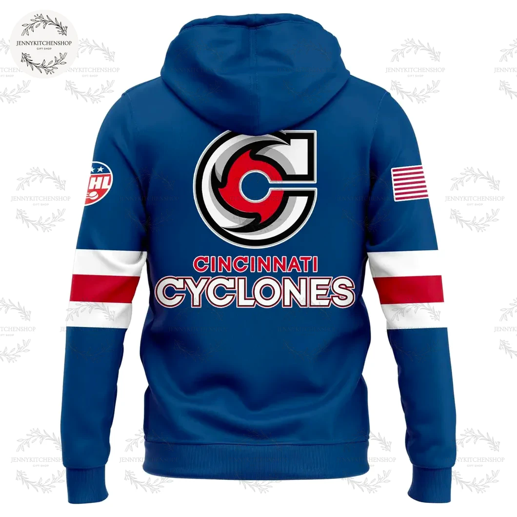 The designer’s creative journey for this piece was about more than just fashion; it was about honoring history while celebrating contemporary passion. They meticulously selected each color, placed every graphic, and chose every design element to tell a story – a story of American grit, hockey glory, and the unwavering spirit of the Cincinnati Cyclones. This hoodie doesn’t just display allegiance; it embodies it, crafted for the fan who understands that true merchandise is a visual extension of their deepest passions.
