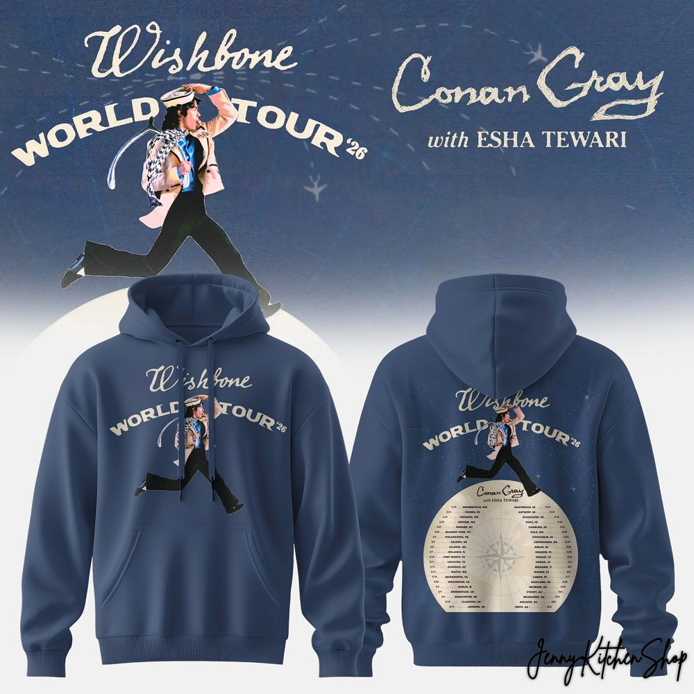 - The ‘World Tour’ Edition (Navy): For those who want to wear their concert experience like a badge of honor, this is the definitive tour piece. The front proudly displays the official “Wishbone WORLD TOUR ’26” graphic, featuring the dynamic image of Conan against a backdrop of flight paths. But the back is where you make your statement. The tour graphic is repeated, larger, above a beautifully designed compass rose. Encircling this compass are the names of every single city and date on the world tour. It’s not just a list; it’s a map of our collective journey. It’s a conversation starter, a way to find fellow fans in the wild and say, “I was there. I was part of it.”
