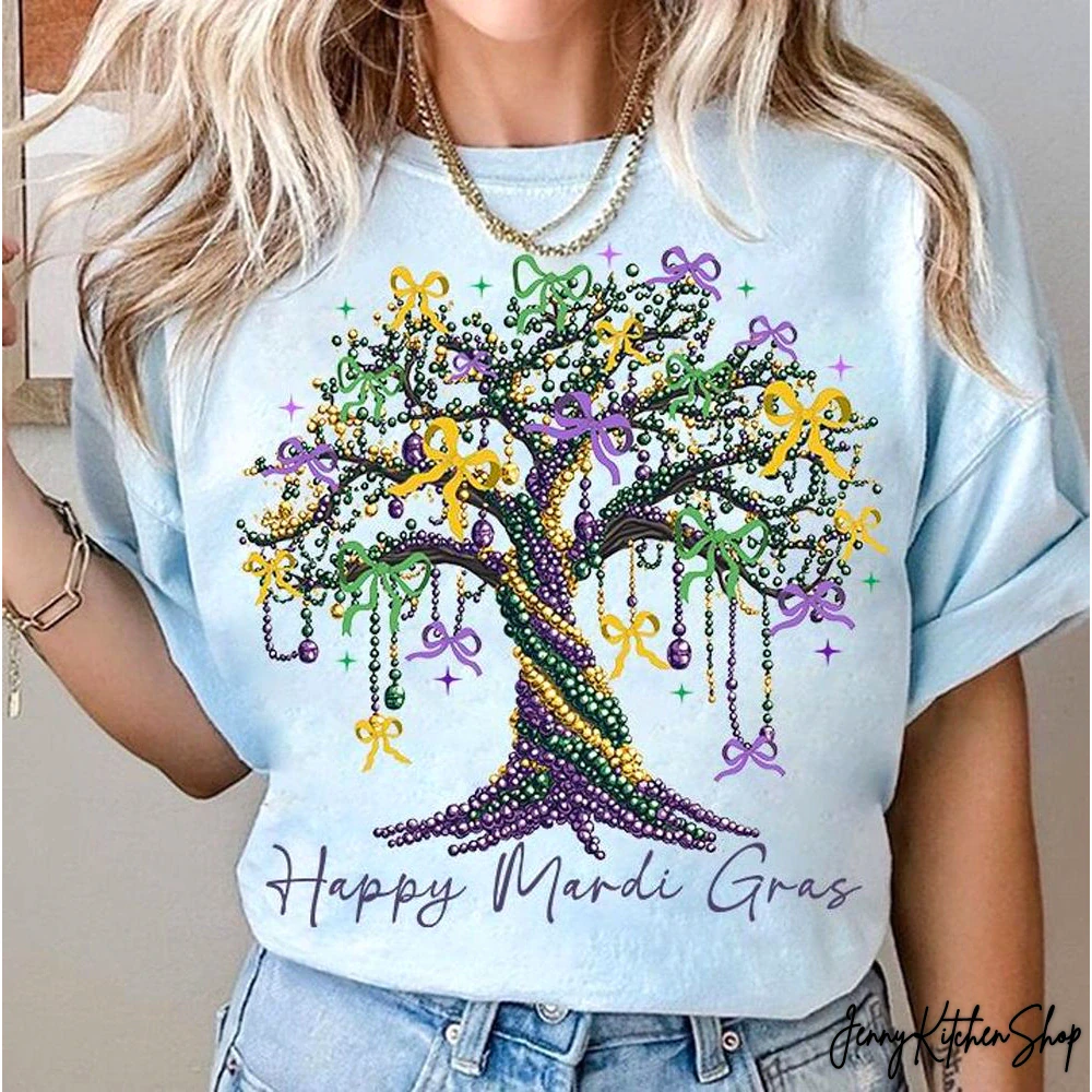 FAGs product Coquette Mardi Gras Tree Mardi Gras Bead Tree Shirt?
