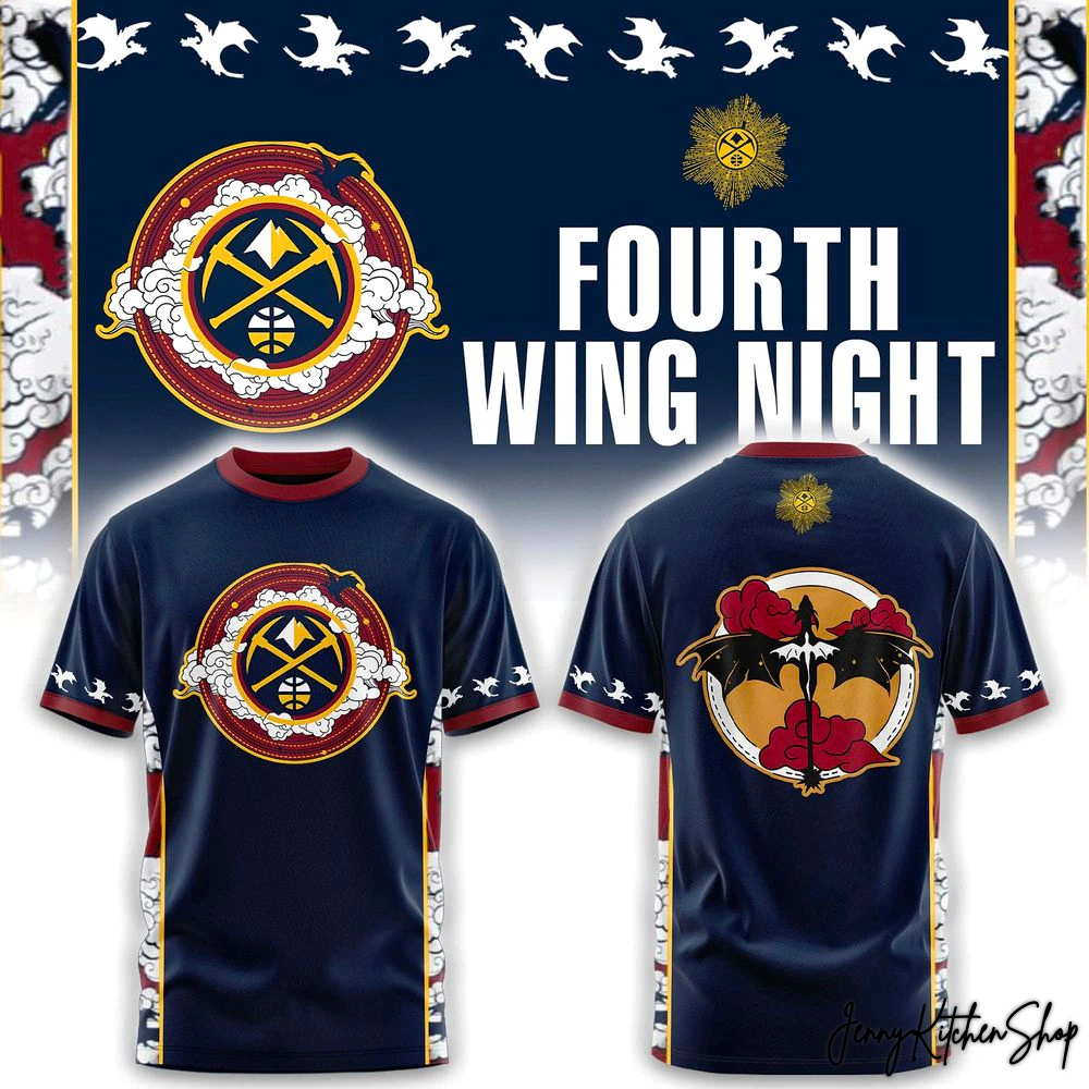 Prepare to elevate your fan gear to legendary status with the Denver Nuggets Fourth Wing Night 2025 Limited Collection. This isn’t just a hoodie or a shirt; it’s a meticulously designed piece of wearable art, a testament to the power of dual fandoms, and a tribute to an unforgettable event. Our creative team drew inspiration from the soaring peaks of the Rocky Mountains and the breathtaking flights of Basgiath’s dragons, meticulously blending iconic symbols into a seamless visual narrative.
