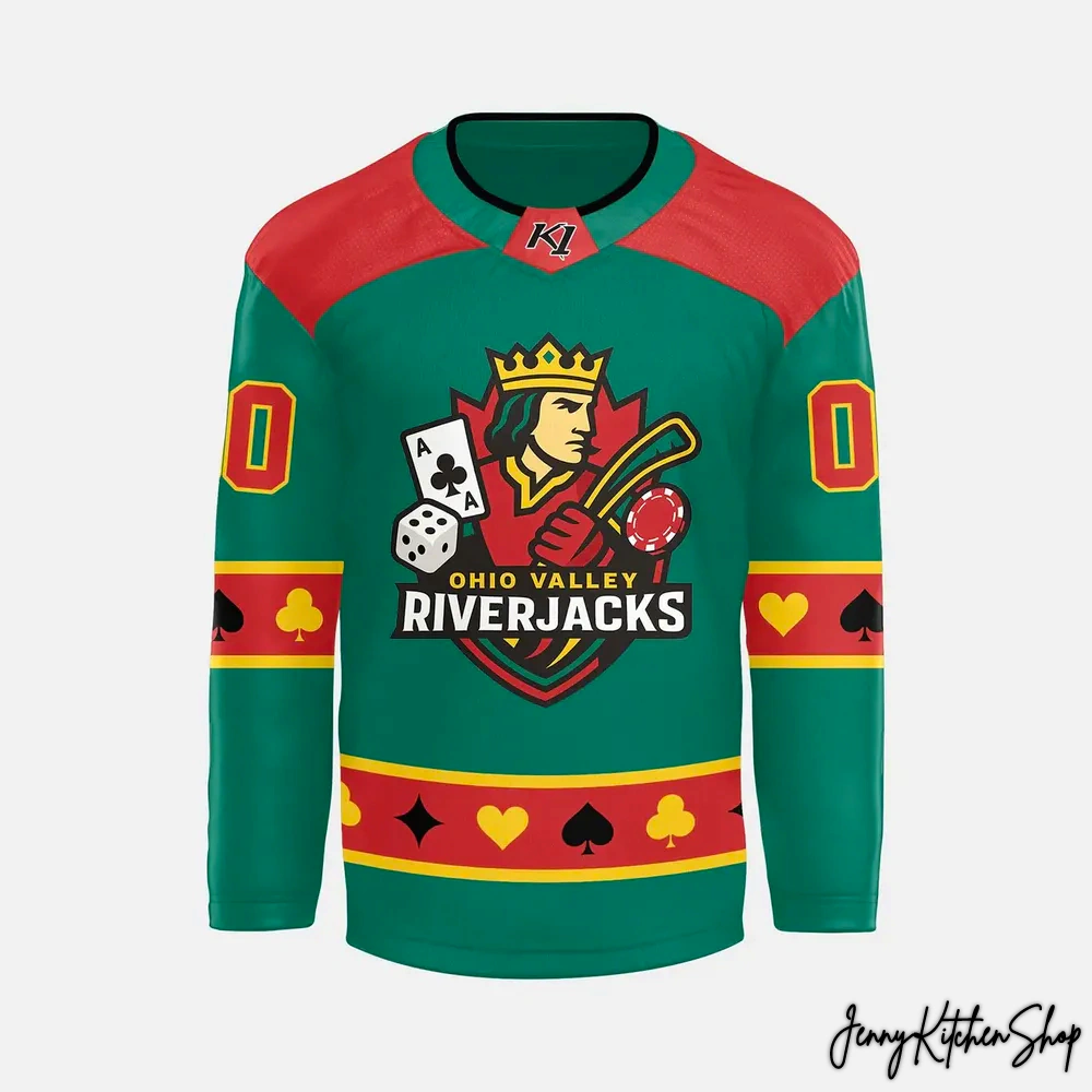 Own the Ice, Deal the Hand: The Ohio Valley River Jacks x Evansville Thunderbolts Custom Hockey Jersey