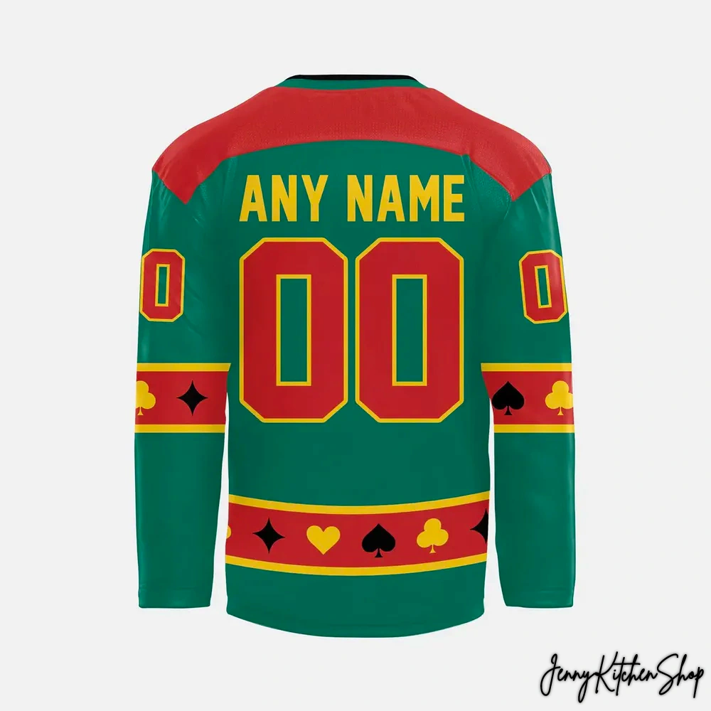 That’s exactly what inspired the vision behind this jersey. Imagine being rink-side, whether it’s for the Evansville Thunderbolts or a local Ohio Valley showdown, feeling the energy surge. Now, picture that same thrill, but with the added swagger of a high-stakes card game – the strategy, the bold moves, the nerve to go all-in. Our goal wasn’t just to create another hockey jersey. It was to forge a wearable legend, a true artifact that embodies the heart of the Ohio Valley, the spirit of the game, and the thrill of rolling the dice and coming out on top. This isn’t just about cheering; it’s about being part of the game, part of the story, part of the winning hand.