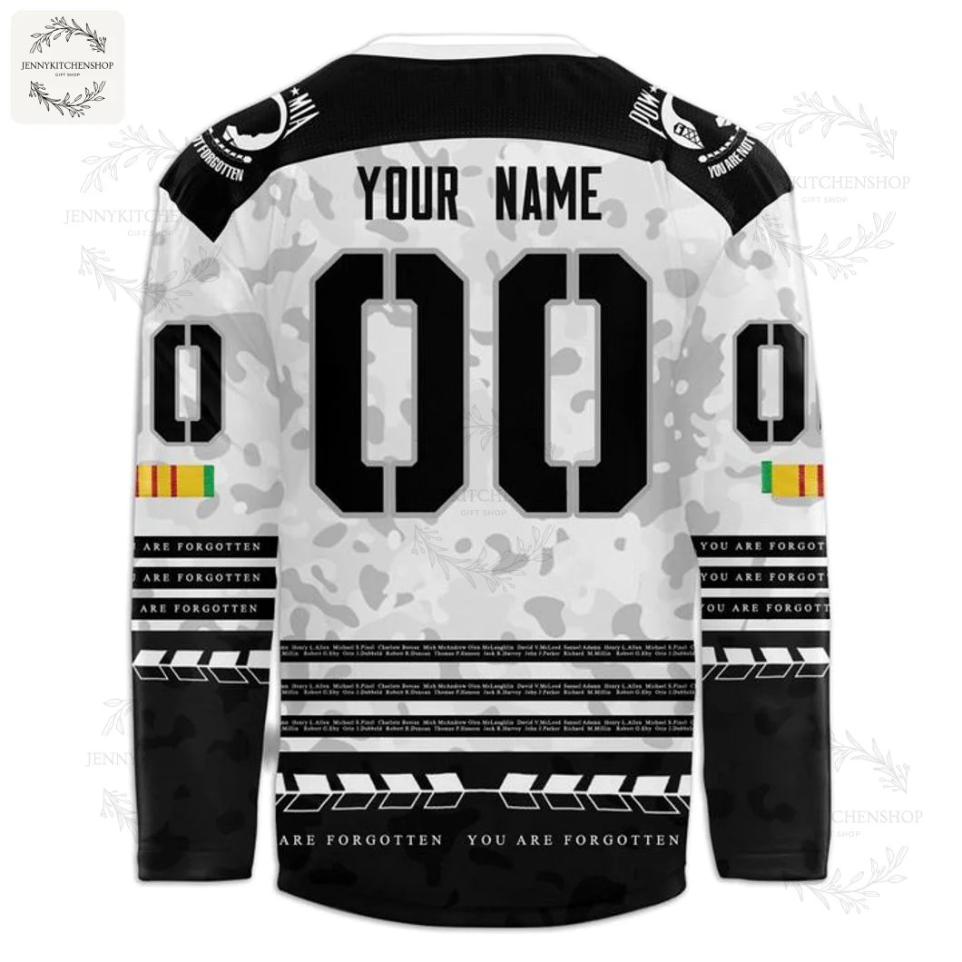 I’ll never forget my first Everblades Military Night at Hertz Arena. The roar of the crowd, the sea of patriotic colors, and the palpable sense of unity as we all stood together, honoring the brave men and women who protect our freedoms. It’s more than just a hockey game; it’s a bedrock of the Southwest Florida community, a powerful reminder of the deep respect we hold for our service members. That feeling, that profound connection, is exactly what the new Florida Everblades Military Night 2025 Hockey Jersey captures and amplifies. When I first got my hands on this year’s design, the details immediately jumped out. The crisp, almost ethereal white and black digital camouflage isn’t just a pattern; it’s a canvas for remembrance. The prominent POW/MIA symbols and the solemn phrase “YOU ARE NOT FORGOTTEN” aren’t simply printed; they’re woven into the very fabric of our shared commitment. Looking closely, the names subtly integrated into the bottom panels feel like a roll call, a quiet acknowledgment of every hero. This isn’t some generic tribute jersey. This is made for us, for the ‘Blades faithful, crafted with the same dedication we see from our military. The premium pique fabric, a substantial 200gsm, feels robust yet breathable, a testament to quality that stands up to the Florida heat and the intensity of a playoff game. The design ensures colors print cleanly before the fabric is even cut and sewn, meaning those sharp, consistent graphics – the Everblades logo, the National Coalition for Patriots badge – are exactly where they should be, without fading or cracking. The collar, always a focal point for team marks, anchors the design perfectly, setting off the powerful imagery. This isn’t just a jersey; it’s a living memorial, a conversation starter, and a piece of our community’s heart.