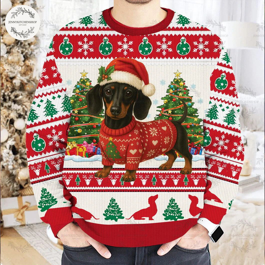 This sweater isn’t just merchandise; it’s a cultural collectible, a vibrant badge of belonging for every devoted Dachshund fan. When you don this festive knit, you instantly join a vast community, connecting with fellow enthusiasts across generations and geographical divides. It’s a silent, joyful declaration of your affection for the breed, prompting smiles and conversation wherever you go. Imagine the delight at holiday gatherings, breed meetups, or even a simple walk in the park, as this unique design sparks shared laughter and fond memories. We understand that true fans seek authenticity and lasting value, not fleeting trends. This sweater is built to embody that trust, crafted from quality materials that promise comfort and durability, making it a piece you’ll cherish and look forward to wearing year after year. It’s designed to become a beloved part of your annual holiday traditions, perhaps even a treasured heirloom passed down, weaving new stories into its festive fabric. Don’t just acquire a sweater; invest in a piece of culture, celebrate a vibrant community, and proudly showcase your enduring love for the charming Dachshund this Christmas season.