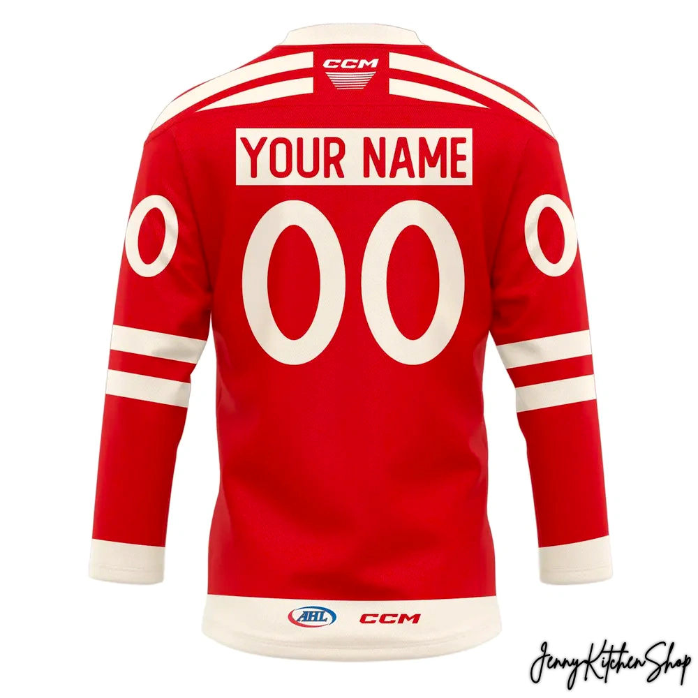 - Authentic League & Brand Details: To complete the experience, subtle yet significant details are integrated. The “AHL” (American Hockey League) logo is prominently featured near the bottom hem on the back, confirming its official affiliation with the league where future stars hone their craft. The “CCM” logo, a hallmark of quality in hockey equipment, is strategically placed at the back of the neck and on the lower hem, reinforcing the jersey’s authentic hockey pedigree.