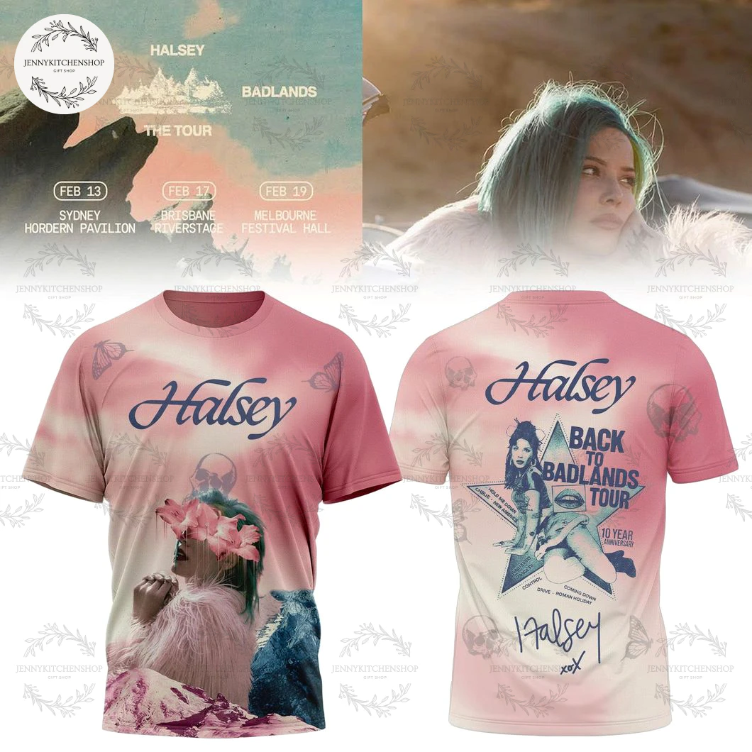 - Subtle Butterfly Motifs: Scattered across the rosy backdrop are delicate butterfly silhouettes. These aren’t just decorative; they symbolize transformation, freedom, and the ephemeral nature of beauty – themes deeply woven into Halsey’s early work. This nuanced detail elevates the design, showing a deeper understanding of her artistic symbolism than typical concert merch.