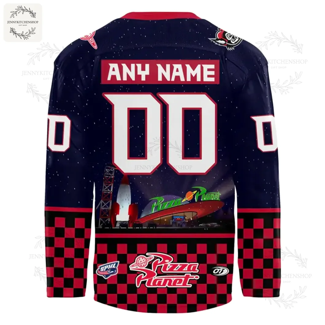 But what truly makes this jersey sing, beyond its impeccable craftsmanship, is how it connects with us, the fans. Picture this: it’s game night at the VBC. You’re heading to your seats, surrounded by fellow Havoc Nation faithful, when someone spots your jersey. “The Claw!” they shout, and suddenly you’re sharing a moment, reminiscing about childhood and celebrating our boys on the ice. This jersey is built for that exact experience. The cut is intelligently designed to prioritize motion in the shoulders and sleeves, meaning you can jump, cheer, and throw your arms up after a wicked slapshot without feeling restricted. It’s equally comfortable worn over your base layers if you’re brave enough to hit the outdoor rink, or just as a standalone piece when you’re out running errands around Rocket City. The beauty of it lies in its versatility; it’s equally at home on the rink, in the stands, or just catching up with friends at a local Huntsville brewery. What sets this apart from any other fan gear is its honest dedication to both universes – the front a playful tribute to Andy’s room, the back emblazoned with the iconic Pizza Planet rocket, a perfect nod to Huntsville’s space heritage. While this might not be your go-to everyday practice jersey due to its special edition status, it’s absolutely the one you pull out for big games, themed nights, or whenever you want to show off your dual loyalty with flair. It’s more than just threads; it’s a statement piece, connecting our love for the Havoc with the timeless joy of Toy Story, bringing a little bit of infinity to our ice.