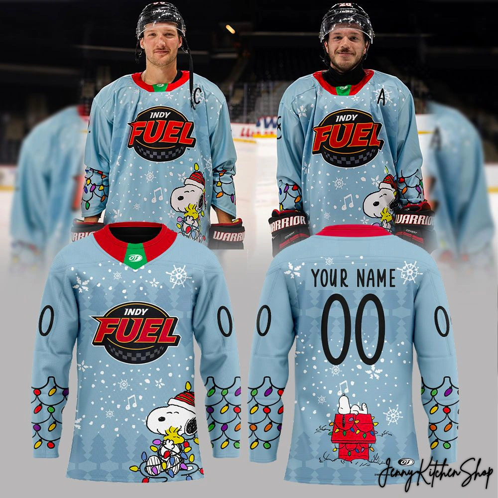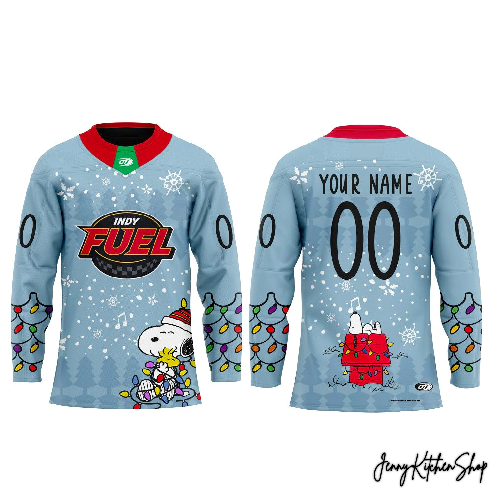 Get ready to light up the rink and your holiday season with a jersey that’s pure magic! The 2025 Indy Fuel x Peanuts Snoopy Festiv-Ice Limited Edition Hockey Jersey isn’t just apparel; it’s a vibrant canvas of festive spirit and undeniable team pride, meticulously brought to life by our visionary designers. From the first glance at the uploaded images, you’re immediately drawn into a wintry wonderland, painted in a serene, ice-blue base that evokes crisp winter days and freshly Zambonied ice.