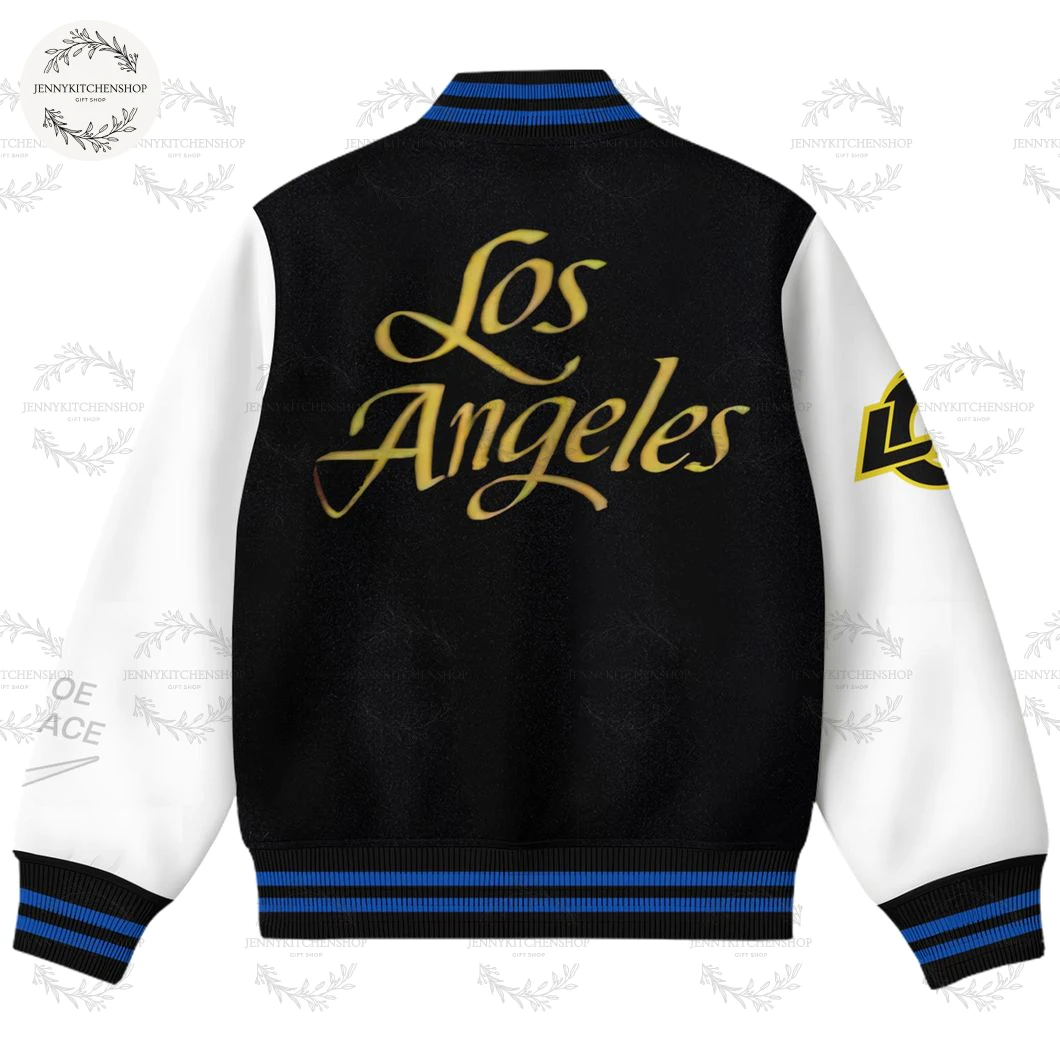 • Sleeve Significance (Back): Completing the rear aesthetic, a striking, stylized “L” in golden-yellow is emblazoned on the right sleeve, mirroring the “A” on the front. Together, they subtly reinforce the “LA” identity, creating a cohesive and impactful design from every angle.