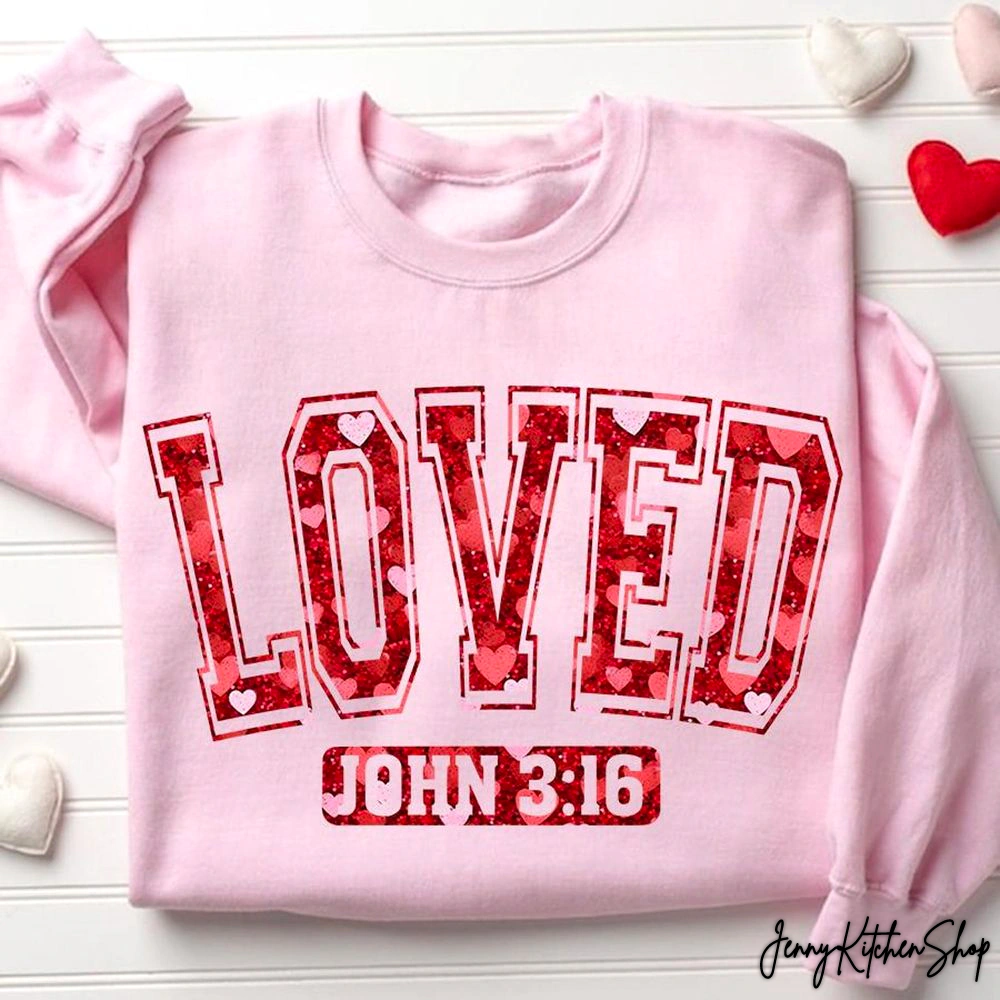 Beneath this impactful word, the timeless scripture “JOHN 3:16” is presented in a classic athletic block font. This provides the profound context for the message, grounding the design in spiritual truth. The choice of this classic font ensures readability and complements the main “LOVED” graphic perfectly, creating a cohesive and aesthetically pleasing arrangement.