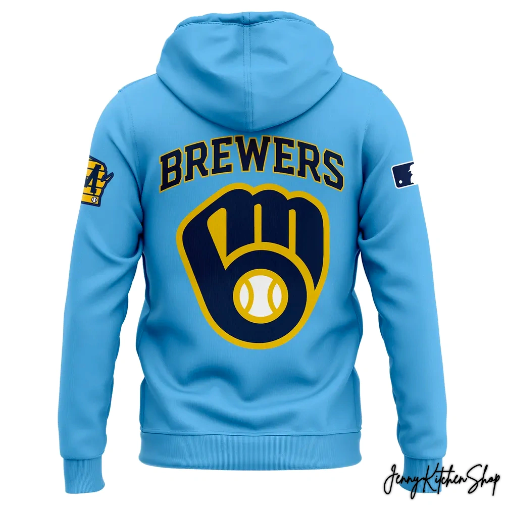 Milwaukee Brewers 2025 Powder Blue Hoodie, Zipper Hoodie, Fleece Hoodie, Gaiter Hoodie