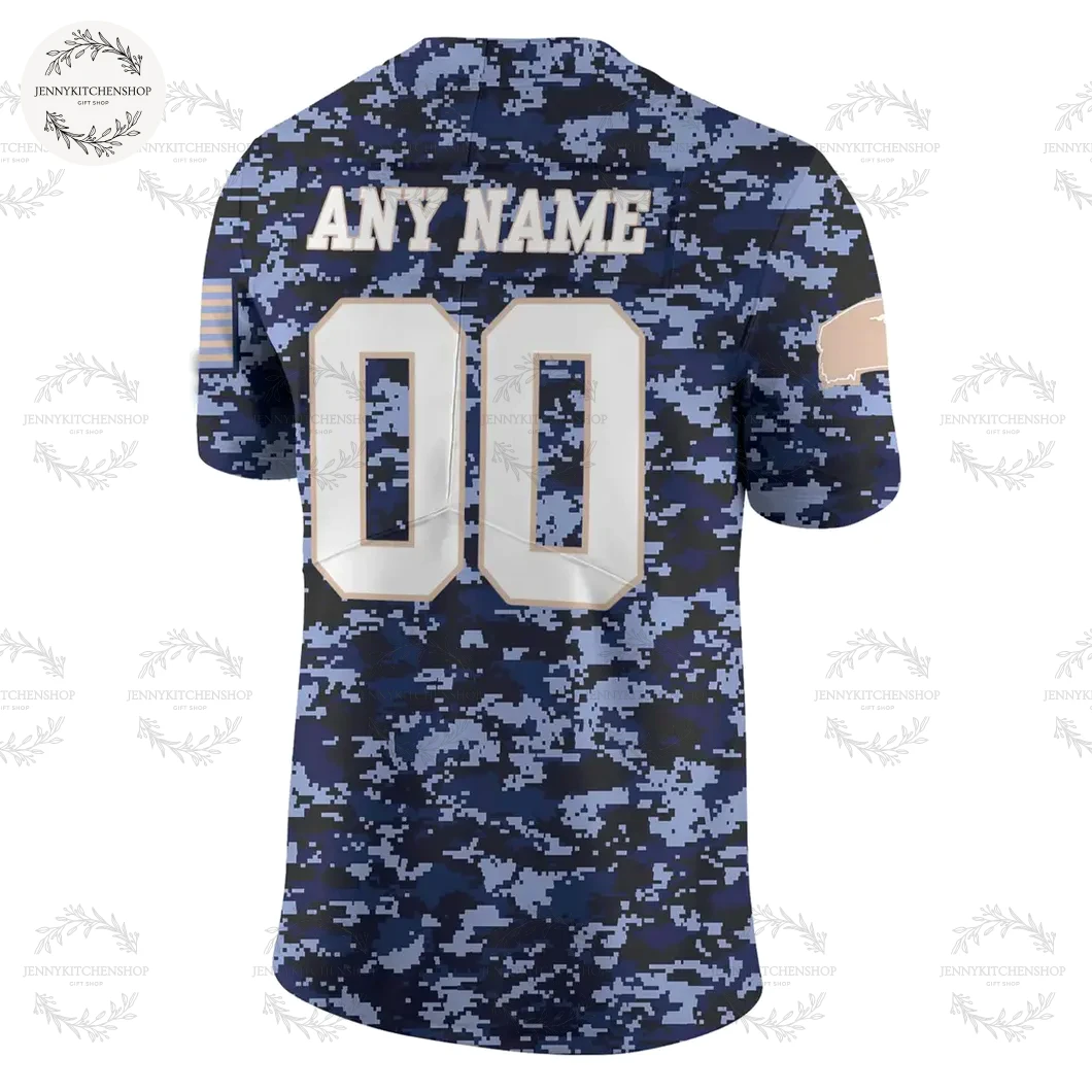 From the first glance, the Montana State Football 2025 Military Appreciation Night Uniform Jersey isn’t just a garment; it’s a visual manifesto. Its most striking feature is the sophisticated digital camouflage pattern, a masterclass in blending tradition with tactical aesthetics. The designer envisioned this pattern not as mere concealment, but as a symbolic digital blueprint of honor. Shades of deep navy, cool royal blue, a lighter sky blue, and subtle hints of charcoal grey coalesce into a dynamic, pixelated landscape across the entire jersey. This isn’t the uniform, static camo you might see elsewhere; this is a fluid, modern interpretation, mirroring the adaptability and strength found both on the football field and in military service.