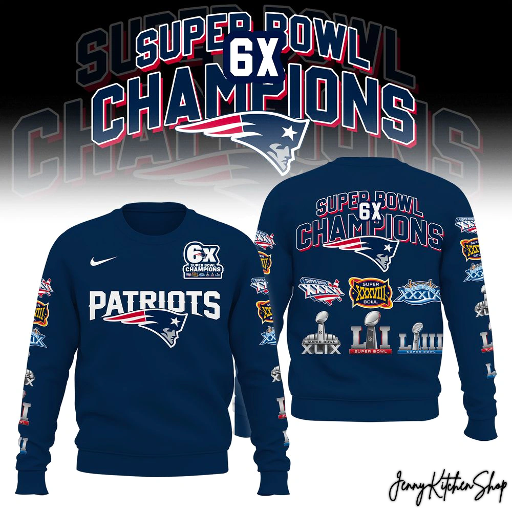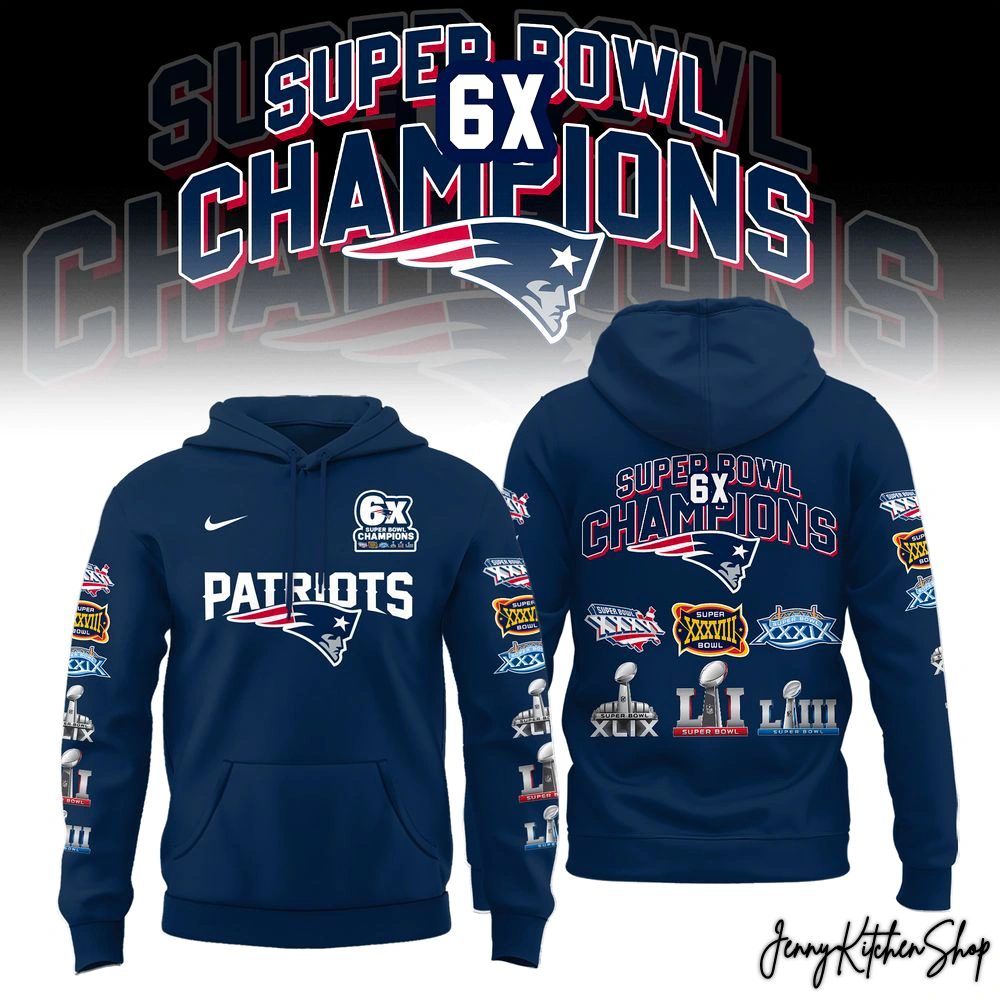 The Undisputed Gridiron Legacy: Patriots 6X Super Bowl Champions Hoodie
