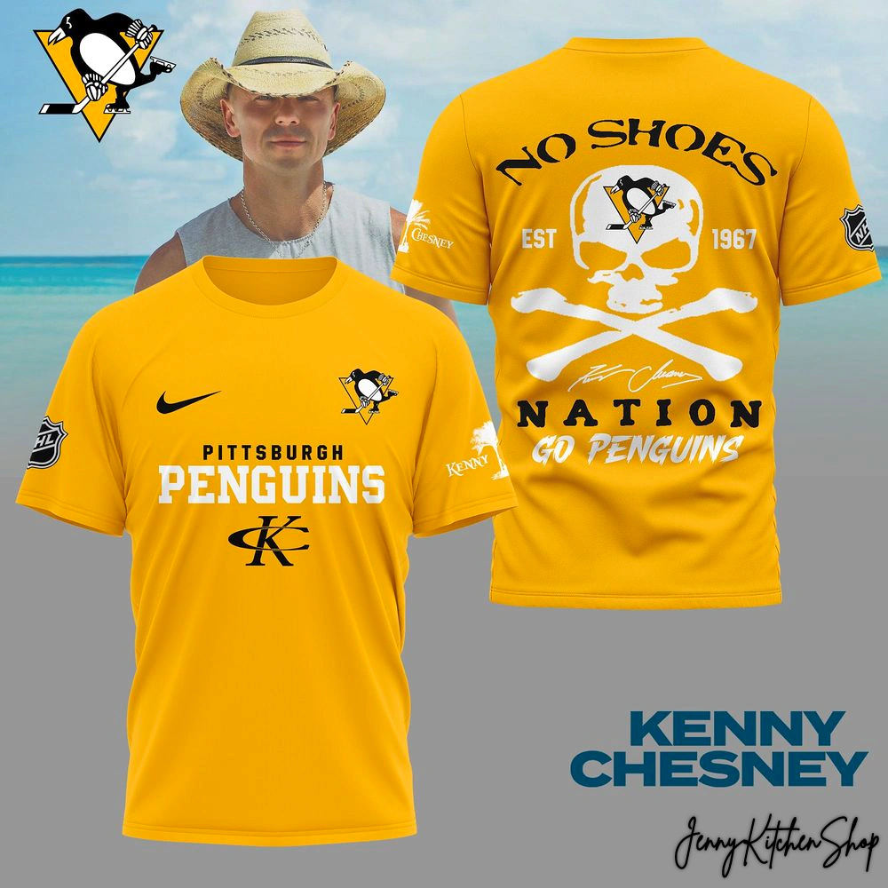 Ready to wear your unique story? Don’t just watch the game or listen to the music – embody the spirit of both. Grab your Pittsburgh Penguins x Kenny Chesney ‘No Shoes’ shirt today and proudly represent every facet of your incredible fandom. It’s time to show the world that your heart truly belongs on the ice and* by the shore.