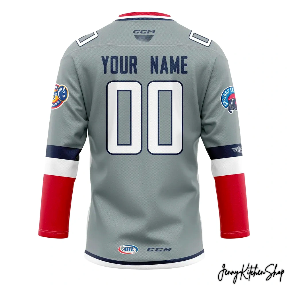 • The Striking Grey Foundation: This isn’t just any grey; it’s a sophisticated, ice-cool shade that immediately catches the eye. The designer’s choice of this specific grey hue was intentional – it symbolizes the unyielding resolve and industrial strength that defines Springfield, a city built on hard work and resilience. It offers a fresh, contemporary canvas that allows the team’s vibrant colors to truly pop, setting this jersey apart from the more traditional white, black, or blue base jerseys you often see on the ice or in the stands. It’s a statement of modern power and understated confidence that competitors rarely dare to explore.