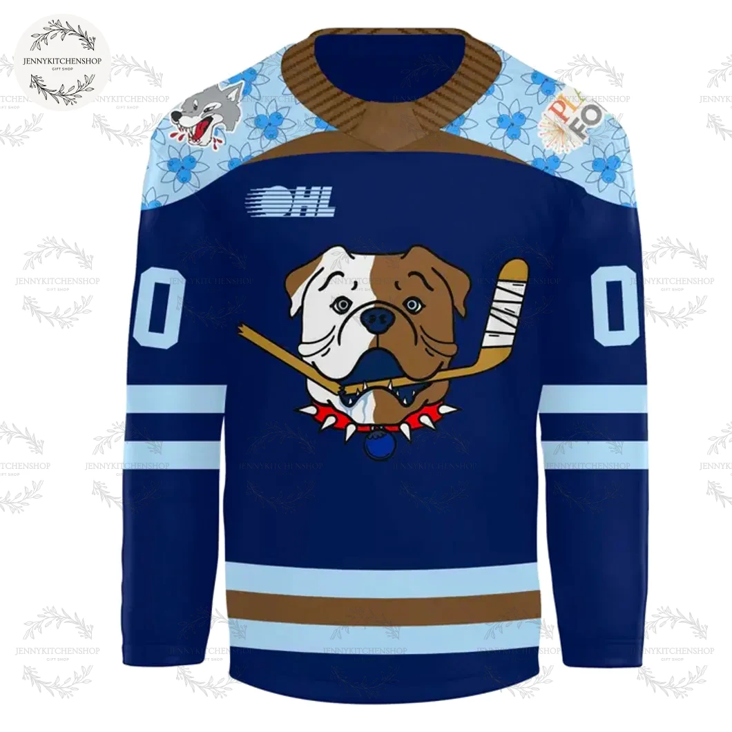 This “Welcome to Sudvegas” jersey offers a distinct departure from traditional team apparel. While it maintains the core spirit of the Sudbury Wolves, its design elements – including the unique bulldog mascot, the intricate shoulder patterns, and the “Sudvegas” theme – provide a fresh, modern, and highly creative aesthetic. It’s designed to be a collector’s item and a statement piece that blends team pride with cutting-edge fan fashion, offering a much deeper narrative than standard team jerseys.