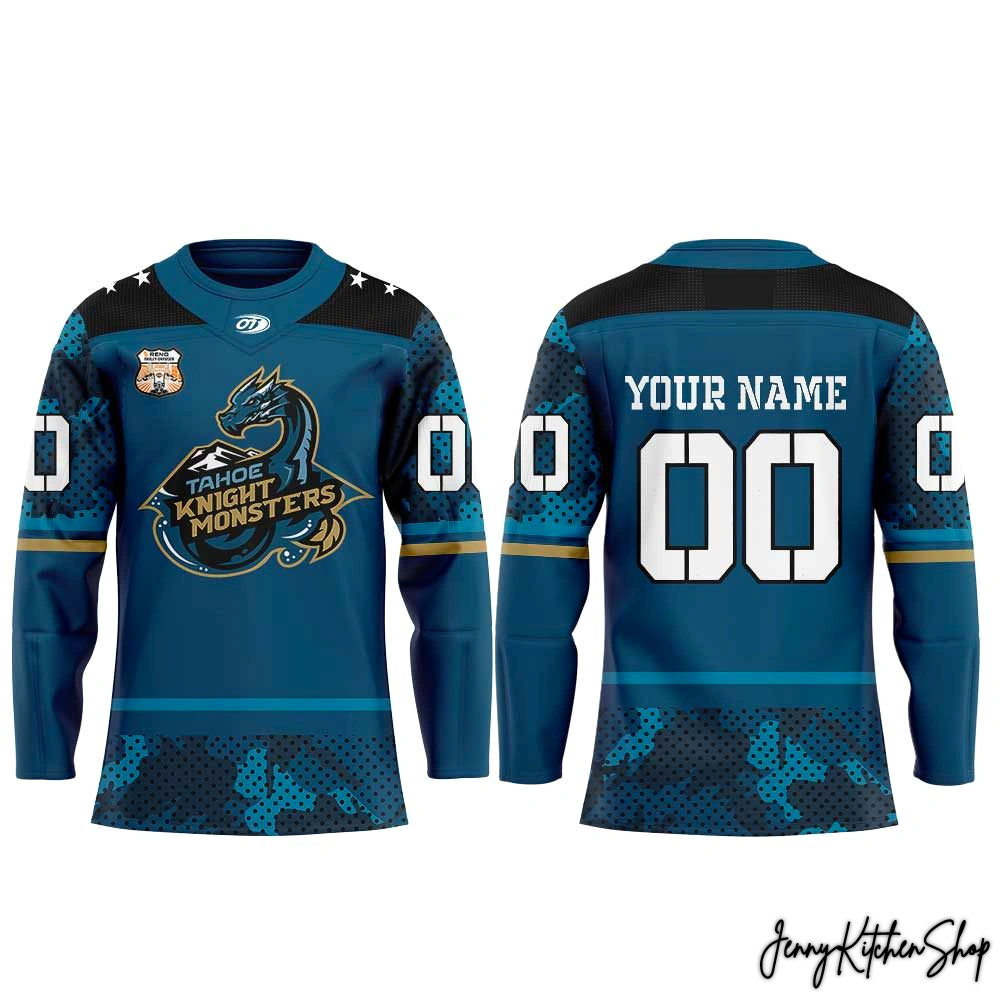 Every stitch, every shade, every emblem on this jersey has been thoughtfully placed to create a cohesive narrative. It’s a design that not only shouts “Tahoe Knight Monsters” but also whispers “thank you” to our military, a blend of power, pride, and heartfelt gratitude. While other fan apparel might offer team colors, this jersey offers a profound visual dialogue between sport and service, heritage and honor, setting it apart as a truly superior piece of fan wear.