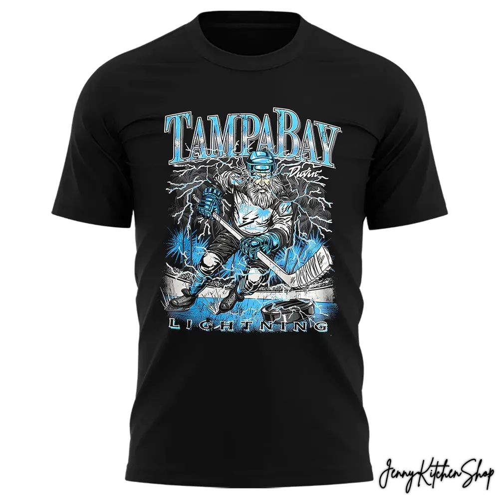 This isn’t your average fan shirt. Look closely at the striking imagery, and you’ll see the heart of the Tampa Bay Lightning pulsating through every detail. The dominant color palette, reminiscent of a storm gathering on the horizon, is punctuated by sharp, dynamic accents that echo the team’s relentless drive. The central design features a bold, stylized representation of the iconic lightning bolt emblem, reinterpreted with a fresh, modern edge that feels both powerful and contemporary. We’ve meticulously integrated subtle nods to the team’s legacy, incorporating graphic elements that speak to their championship spirit and unwavering resilience. The “Zeus” moniker, hinted at in the collection’s name, imbues the design with a sense of celestial power and dominance, a perfect metaphor for the team’s on-ice prowess.
