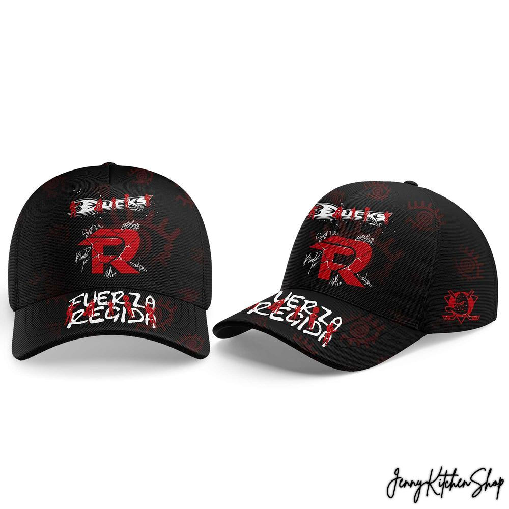 • Exclusive Collaboration Emblem: At the core of the design, you’ll find a specially crafted emblem that artistically blends elements from both the Ducks and Fuerza Regida. This isn’t just a logo slapped on; it’s a thoughtful fusion, where the sleek lines of the Ducks’ insignia find a harmonious counterpart in the more organic, flowing artistry associated with Fuerza Regida’s visual identity. This emblem serves as the undeniable mark of this singular event.