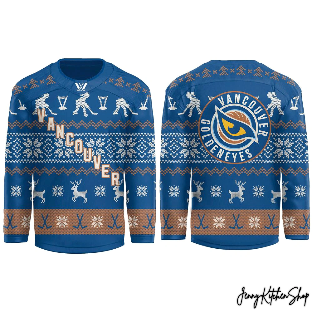 The ice outside glistens under the soft glow of winter lights, but inside, the air crackles with something even more electrifying: the anticipation of game night. You can almost hear the roar of the Vancouver crowd, the slap shot echoing off the boards, the collective gasp of thousands as the Goldeneyes break away. But this isn’t just any game night; it’s the game night during the most wonderful time of the year. For too long, holiday gear has been… well, a little too safe, a little too predictable. It hasn’t captured the raw, passionate energy of the rink, the heart-and-soul dedication of true Vancouver hockey fans, and the festive spirit all at once. We saw that gap, felt that missing connection, and decided it was time to unleash something truly special, something that screams “Vancouver Goldeneyes” with every stitch of holiday cheer. This isn’t just another jersey; it’s your game-day armor, your holiday party statement, and a warm embrace of everything it means to be a Goldeneyes fanatic during the season of giving.