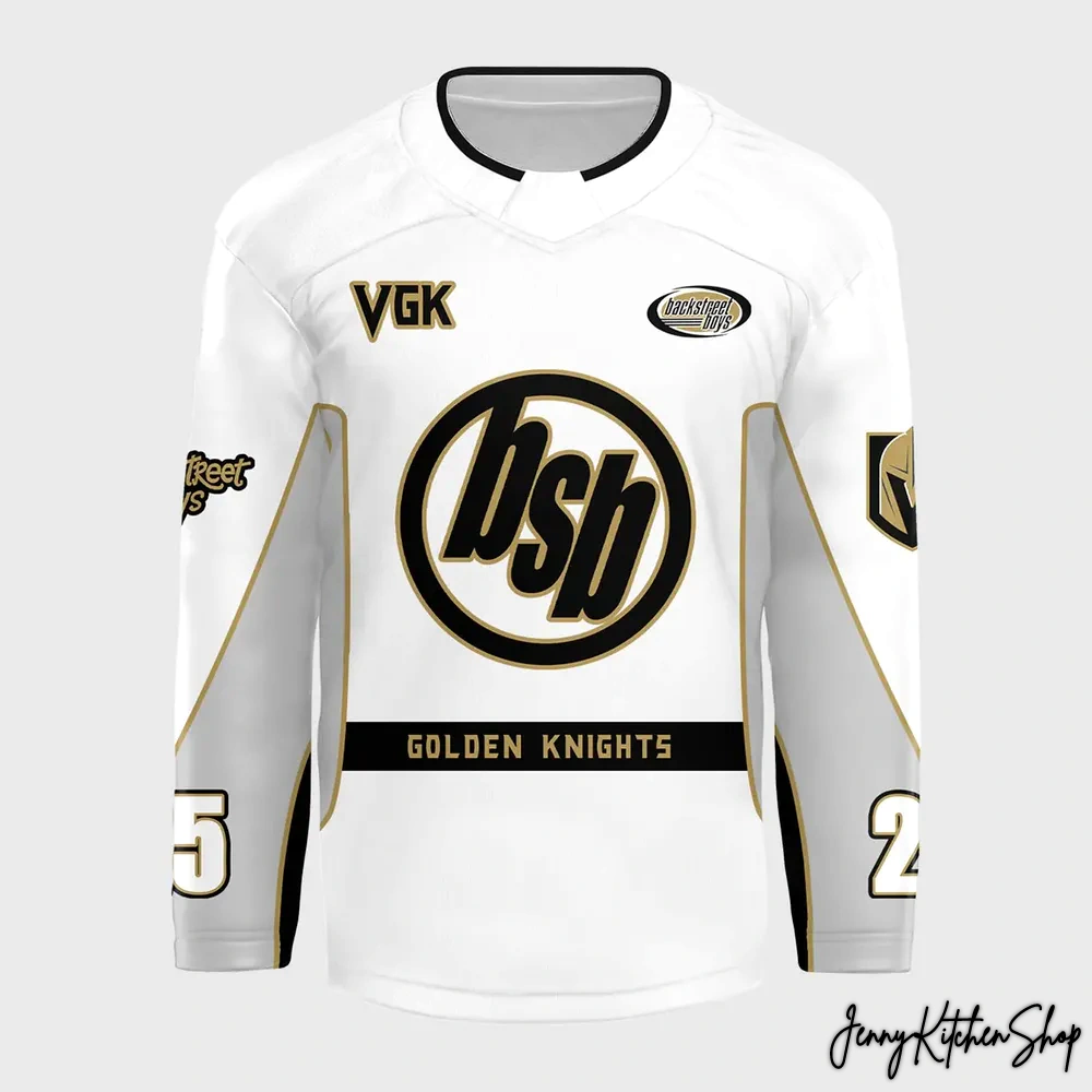 - Shoulder Accents: The shoulders carry subtle yet powerful emblems: the iconic Vegas Golden Knights helmet logo is proudly displayed, a symbol of the team’s valiant spirit. The opposing shoulder features another nod to the Backstreet Boys, ensuring that from every angle, the dual fandom is celebrated.