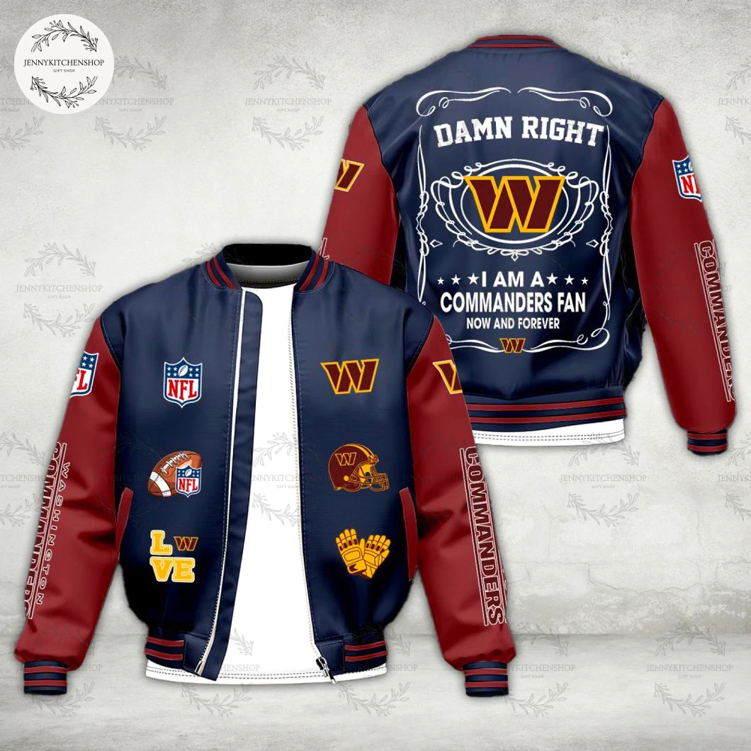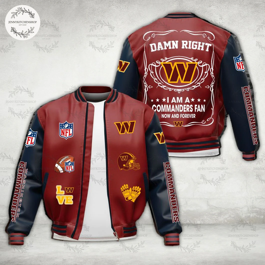 Washington Commanders Damn Right I’m a Fan Now and Forever Bomber Jacket